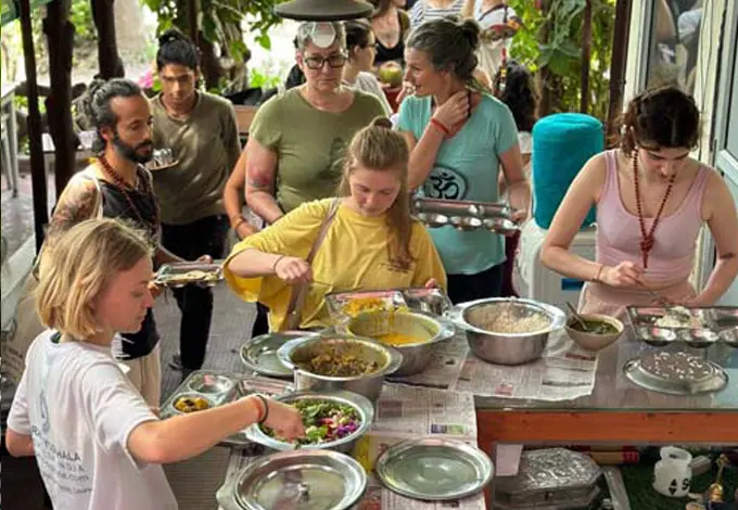 Clean and comfortable accommodation comprises of single private rooms and double shared rooms with attached washrooms. Three highly nutritious, healthy and sattvic meal per day (Breakfast, Lunch and Dinner). Our yogic diet food is perfect for nourishing the mind, body and soul. Detox and herbal teas are served twice a day.